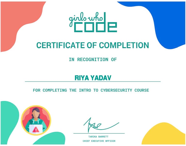 As part of the Girls Who Code Summer Program, I explored cybersecurity and coding fundamentals while completing a hands-on project on chatbot development. Using Python and logic-based scripting, I learned how chatbots process input, generate responses, and simulate natural conversation. I built a prototype chatbot designed to answer user queries, which helped me understand the intersection of AI, language, and security. This experience strengthened my technical confidence and sparked a deeper curiosity about human-computer interaction and digital safety.