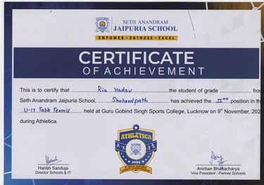 I call myself an athlete because I believe true sportsmanship lies in staying calm in victory and learning from defeat. When I play, I focus on the present moment and adapt to every challenge. Even when I’m losing, I don’t get intimidated—I concentrate on improving my game, point by point. For me, playing is as much about focus and resilience as it is about skill. I love playing table tennis, and over time I’ve honed my abilities to compete at advanced levels. My dedication to the sport has earned me several accolades,