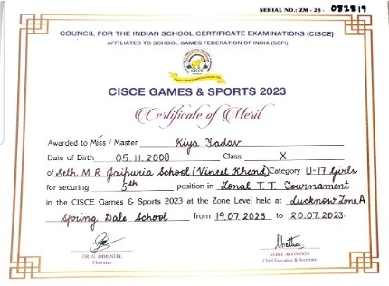2025- 2025 CBSE Clusters- BRONZE MEDAL IN TEAM AND SINGLES EVENT