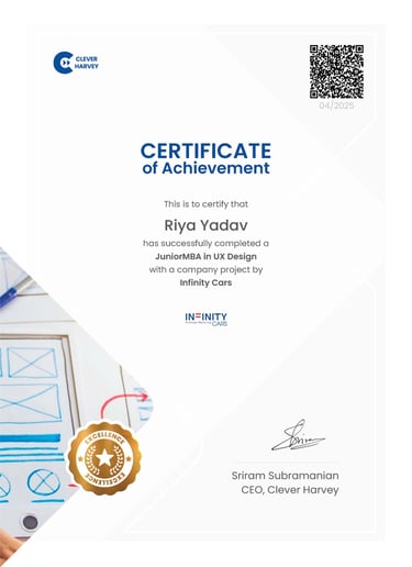 In grade 11, I took an extracurricular UX (User Experience) Design course to understand how design influences how people interact with websites. The program blended creativity with technology and challenged us to make digital experiences more intuitive. I analysed existing web pages, identifying confusing layouts and poor navigation, and later redesigned the Infinity Cars website to make it cleaner and more user-friendly. I created wireframes, organized content for clarity, and applied principles like accessibility and visual hierarchy. My final design received positive feedback for its simplicity and ease of use, helping me develop strong skills in design thinking and user research..